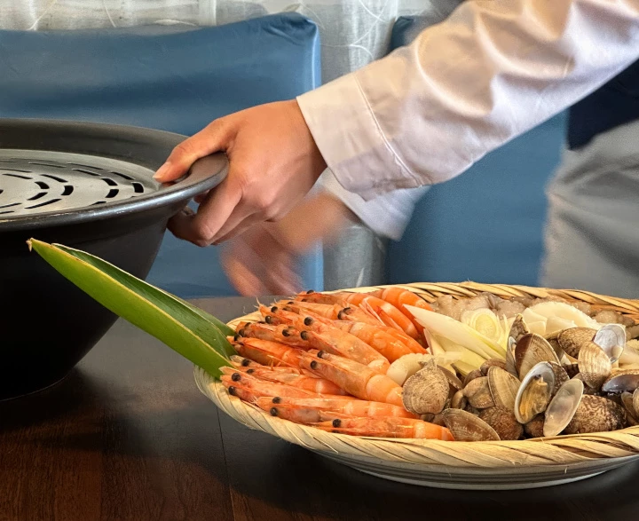新鮮な海鮮を専用の蒸気鍋で調理!蒸気鍋は海鮮の旨味を味わえます。